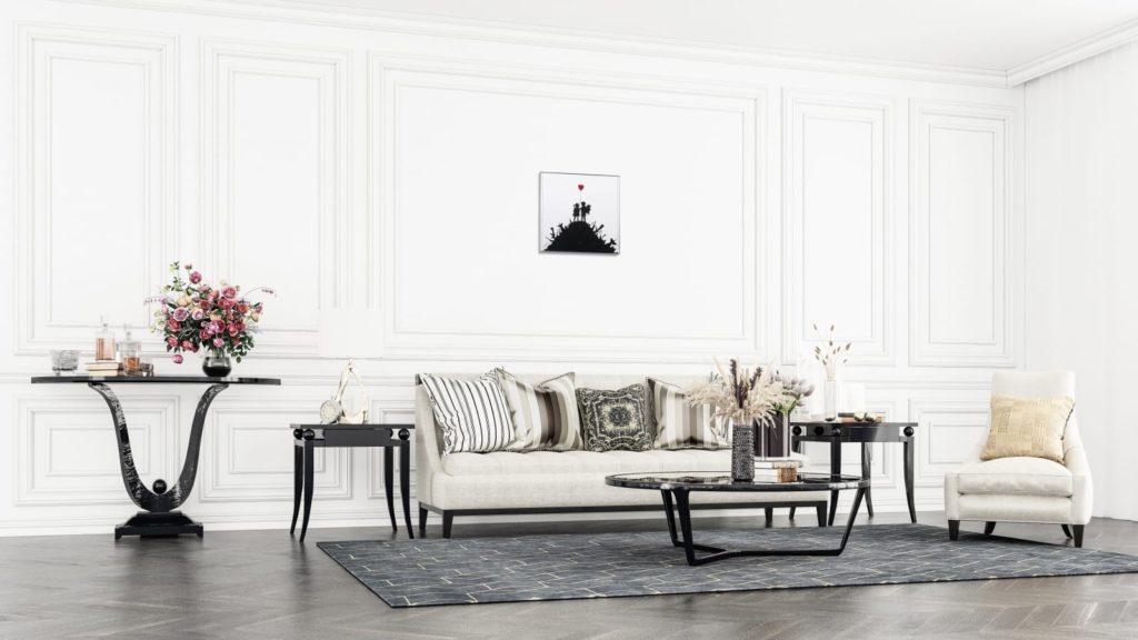 When choosing an artwork for your own home it is important to think about how it can either work as a point of contrast or as a way to compliment. One of the most significant ways in which art can enhance your interiors is by adding colour and texture to your space. Artwork can complement your room’s colour palette or introduce new shades to the space. A painting or a sculpture can add texture to a room that may be lacking in it, creating a sense of depth and dimension. It can help create a cohesive theme throughout the room, tying together the different elements.